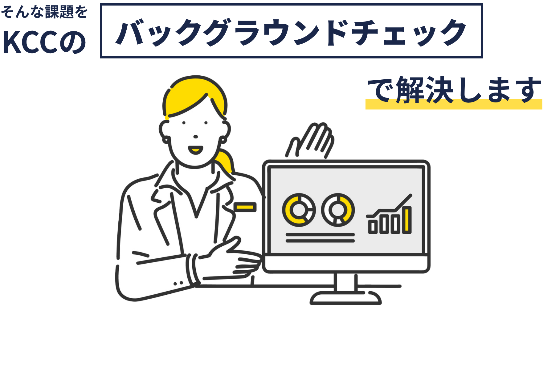 学歴や職歴、犯罪歴、破産歴などを調べるのみならず、KCCではお客様の業種において特に注視したい採用候補者の項目を集中的に調べていきます。